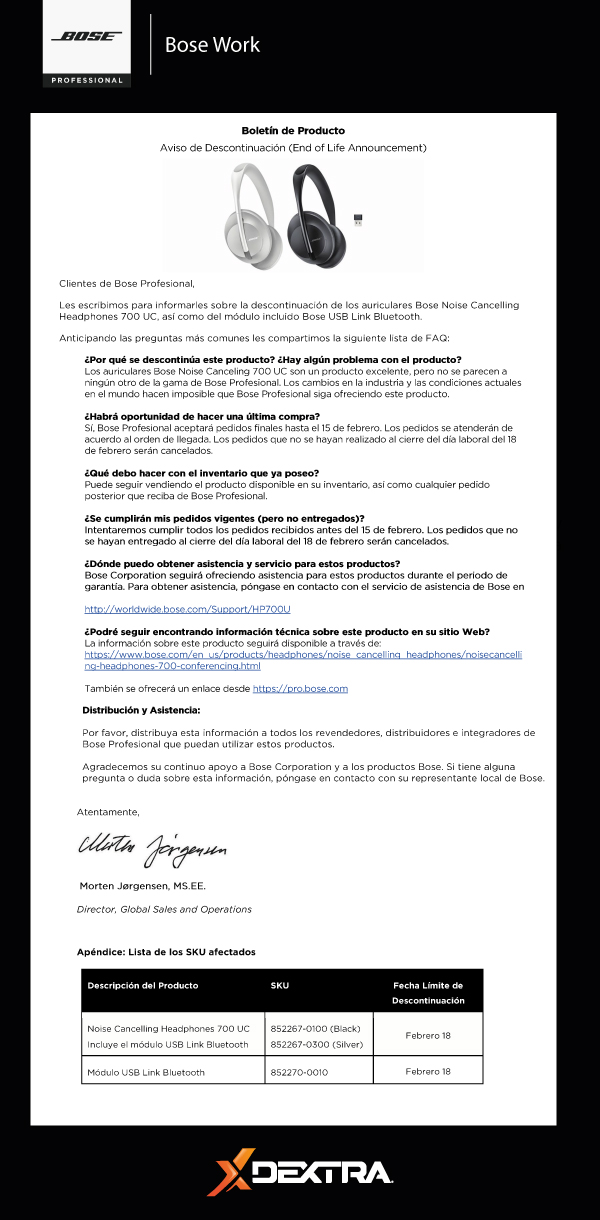 Descontinuación de los auriculares Bose Noise Cancelling Hea
